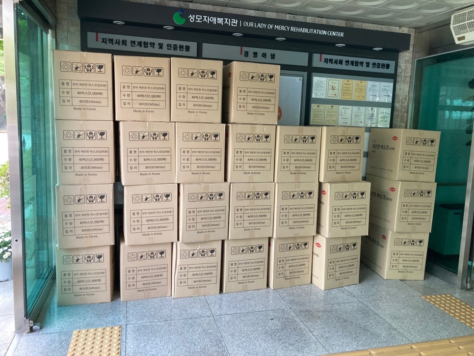 그리고 성모자애복지관에도 5만장을 기부하였어요.