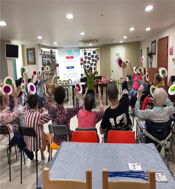건강 체조를 통하여 전신운동과 함게 인지 기능 향상에 도움을 주었습니다.